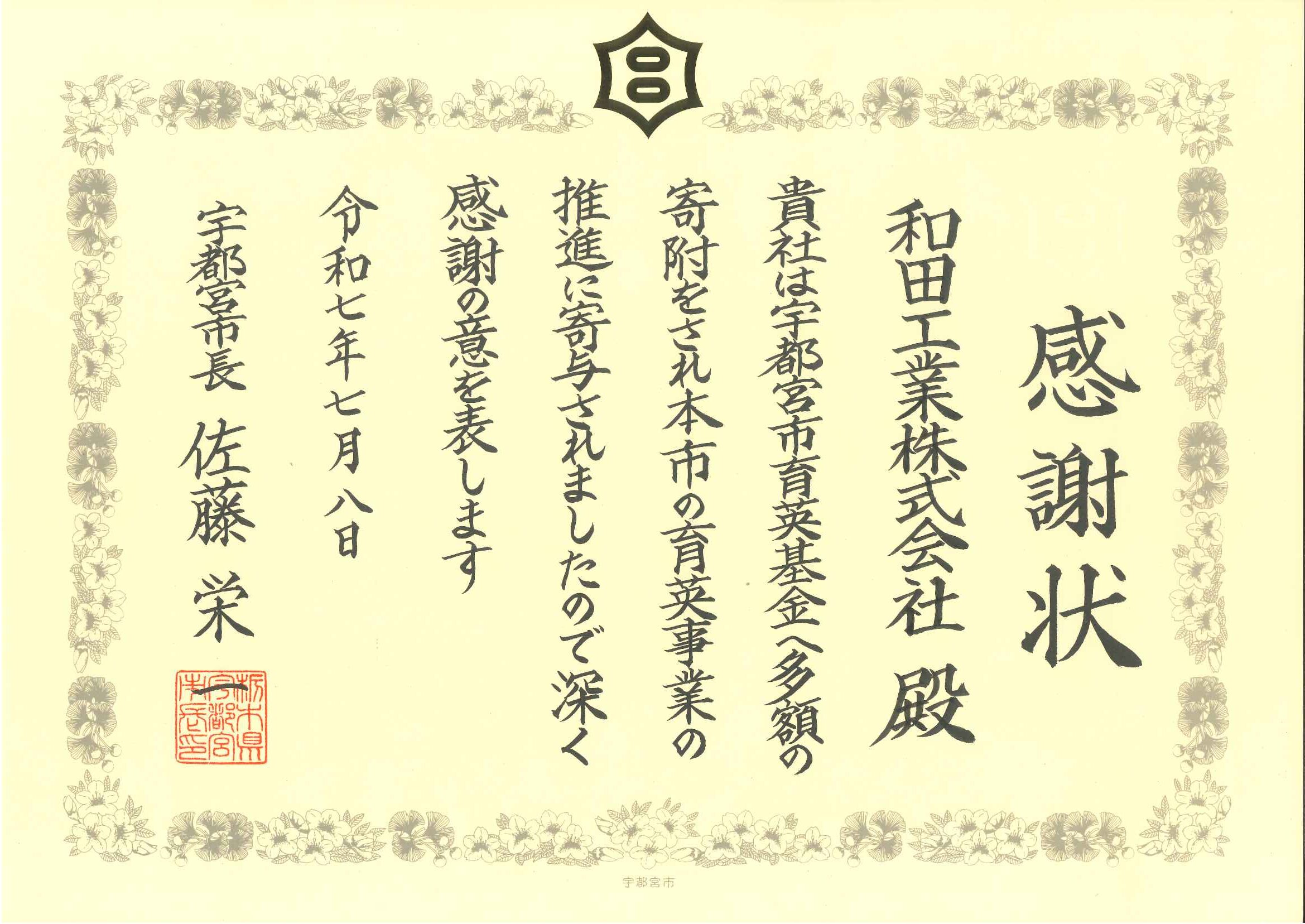 - 宇都宮市長 表彰 2025年07月08日/ 宇都宮市長から宇都宮市育英基金へ寄附を行い育英事業の…